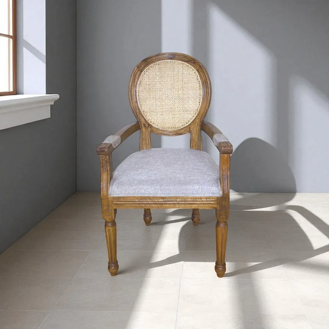 Louis XVI Cane & Linen Accent Chair