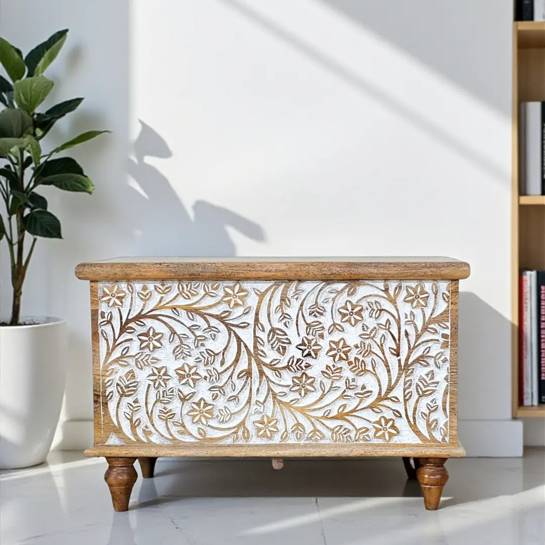 Floral Carved Storage Trunk