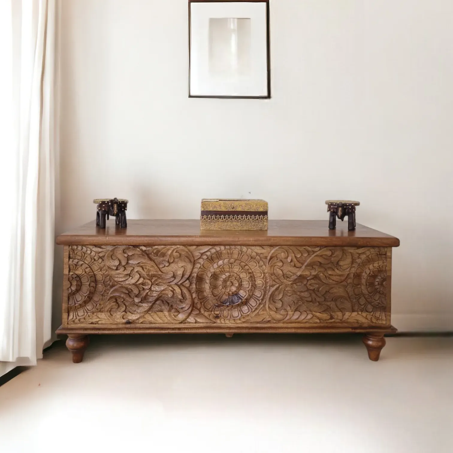 Carved Floral Storage Trunk