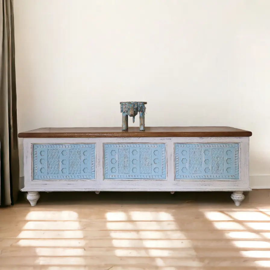 Carved Two-Tone Storage Trunk
