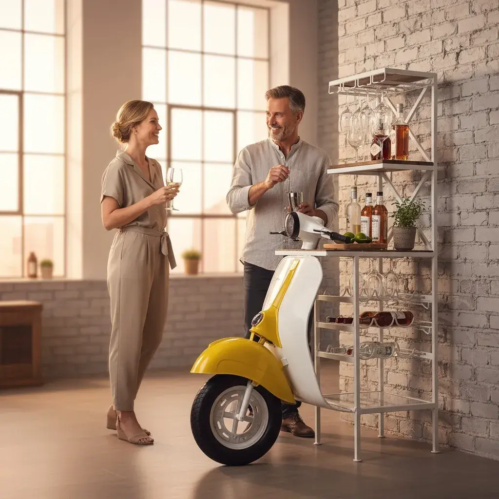 Reclaimed Wood Heritage Bar Hutch – Multicolor Chevron Finish