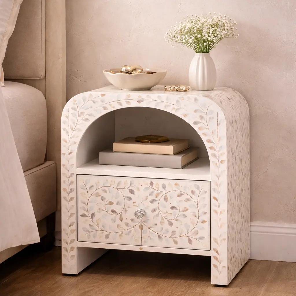 Al-Fannar Mother of Pearl Inlay Bedside – Signature Floral Edition