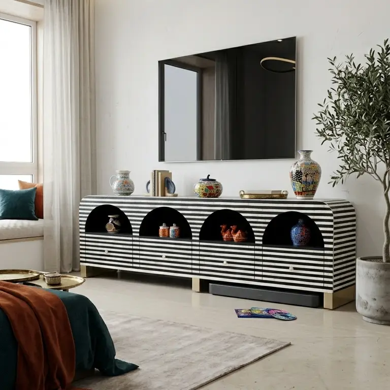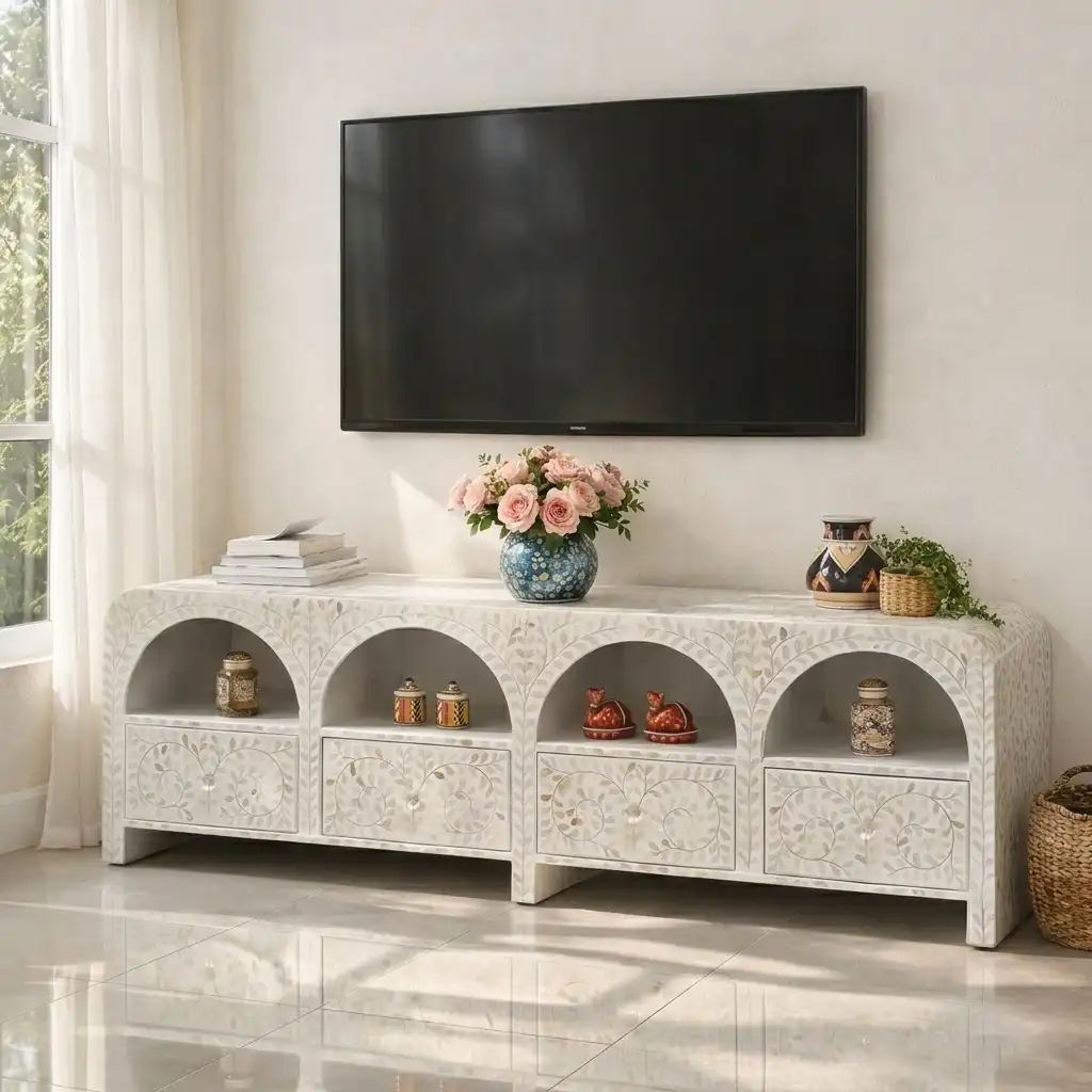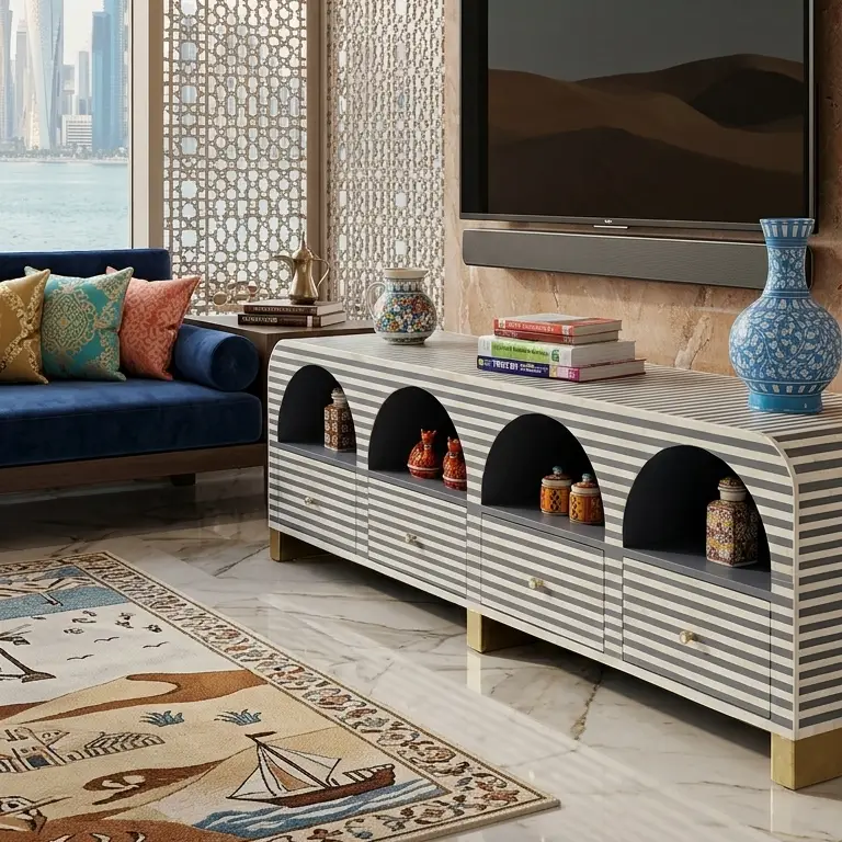 The Majlis Al-Hawa Arched Bone Inlay Media Console