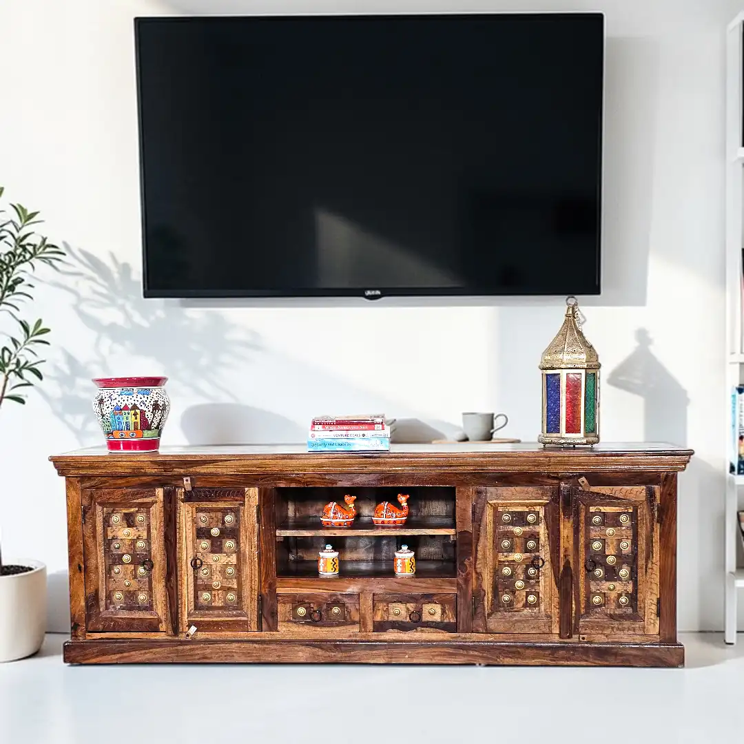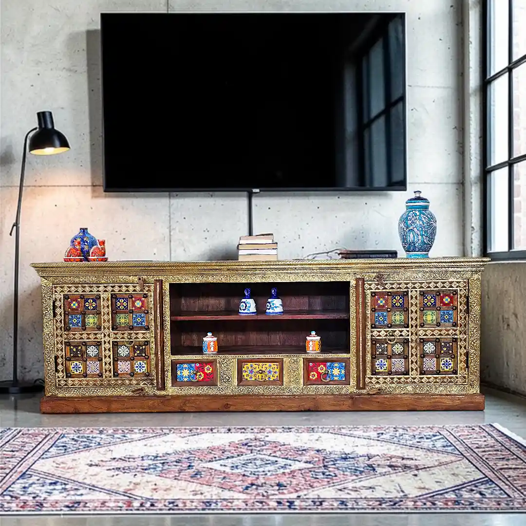 Alcázar Royale Solid Sheesham & Embossed Brass Media Console