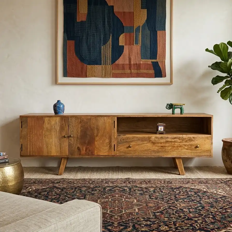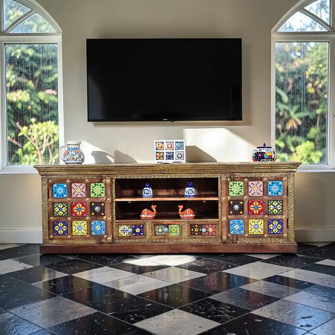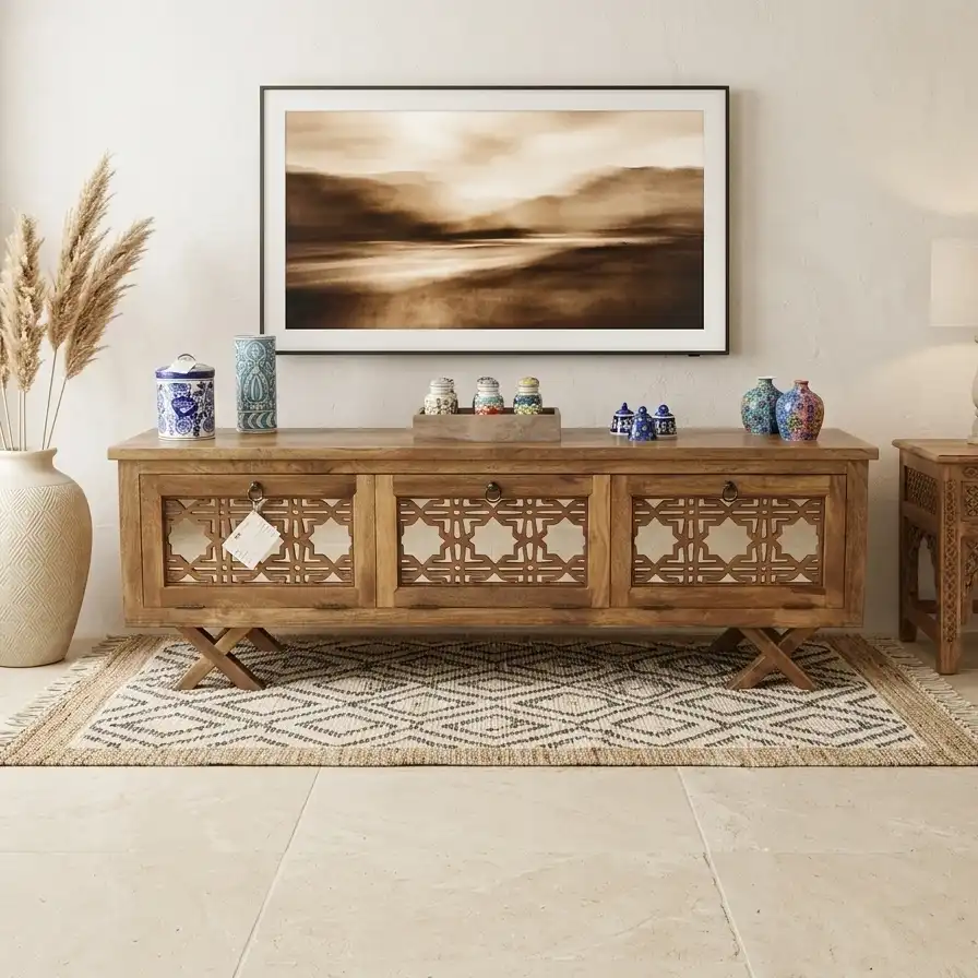 Indigo Aura Artisan Media Stand (Mueble de Madera Maciza)