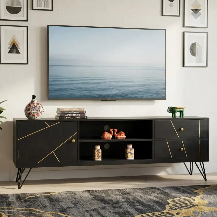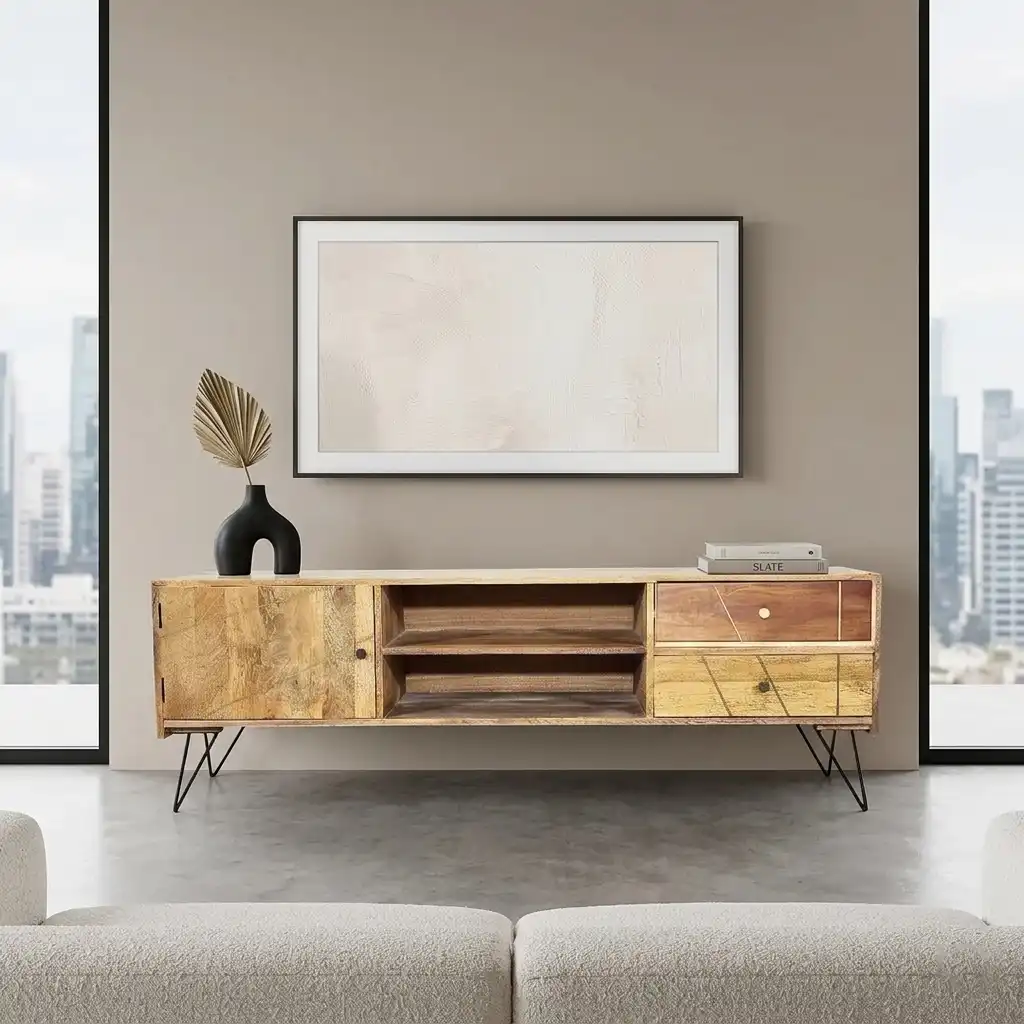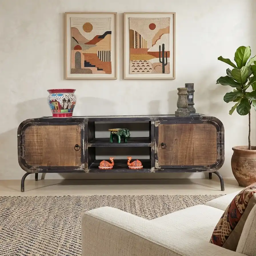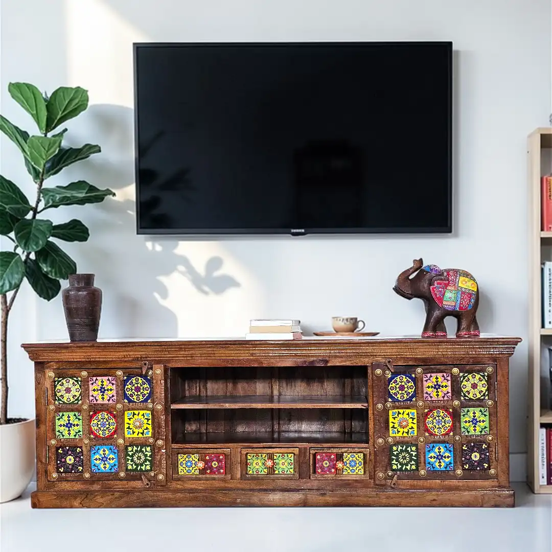 Indigo Aura Artisan Media Stand (Mueble de Madera Maciza)