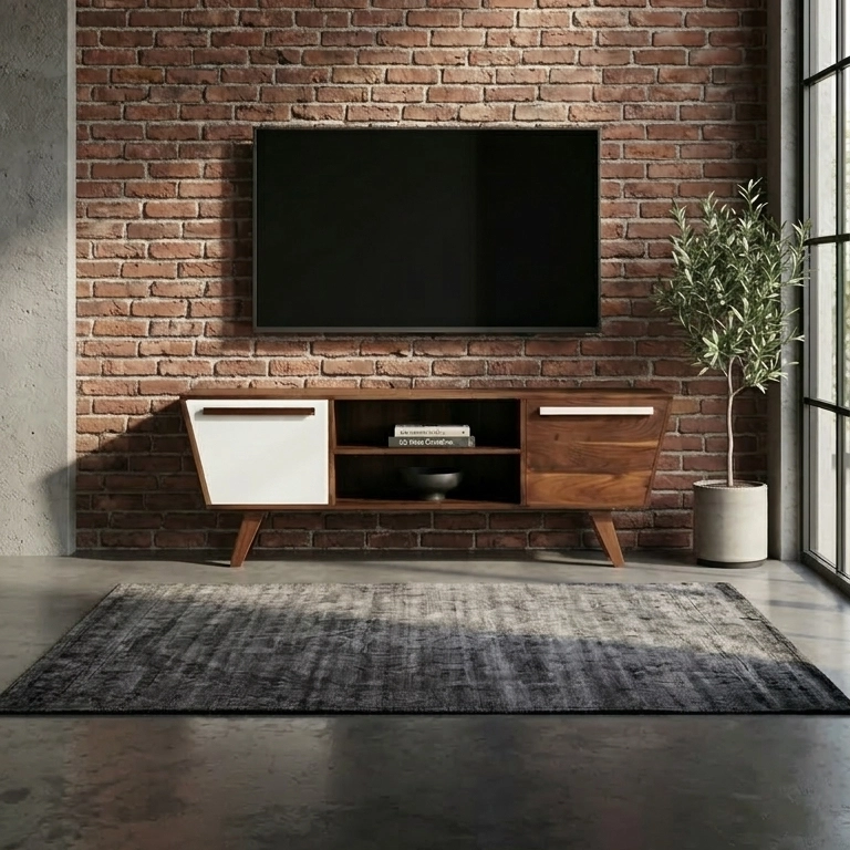 "Hala" Geometric Mixed-Tone TV Unit / طاولة تلفزيون "هلا" بالخشب والنقوش