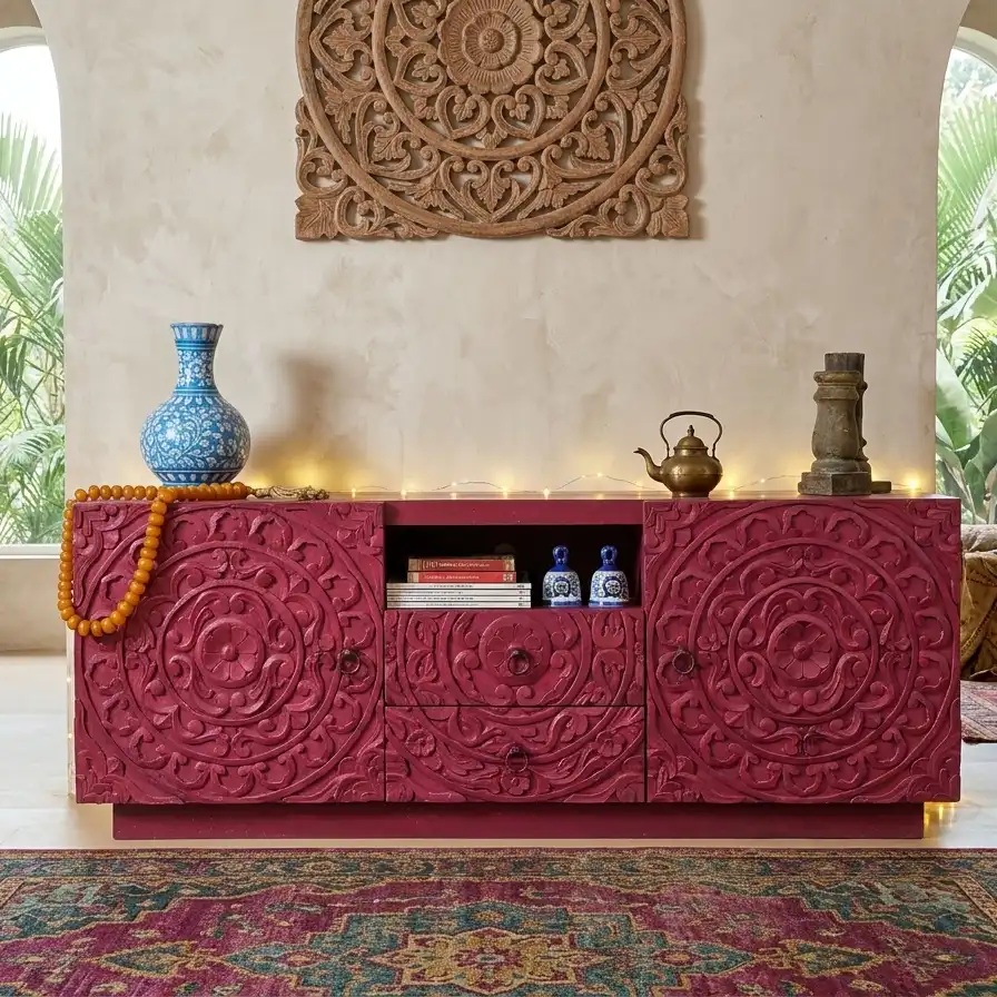 Royal Mandala Media Sideboard / خزانة "شمس" الخشبية المنحوتة
