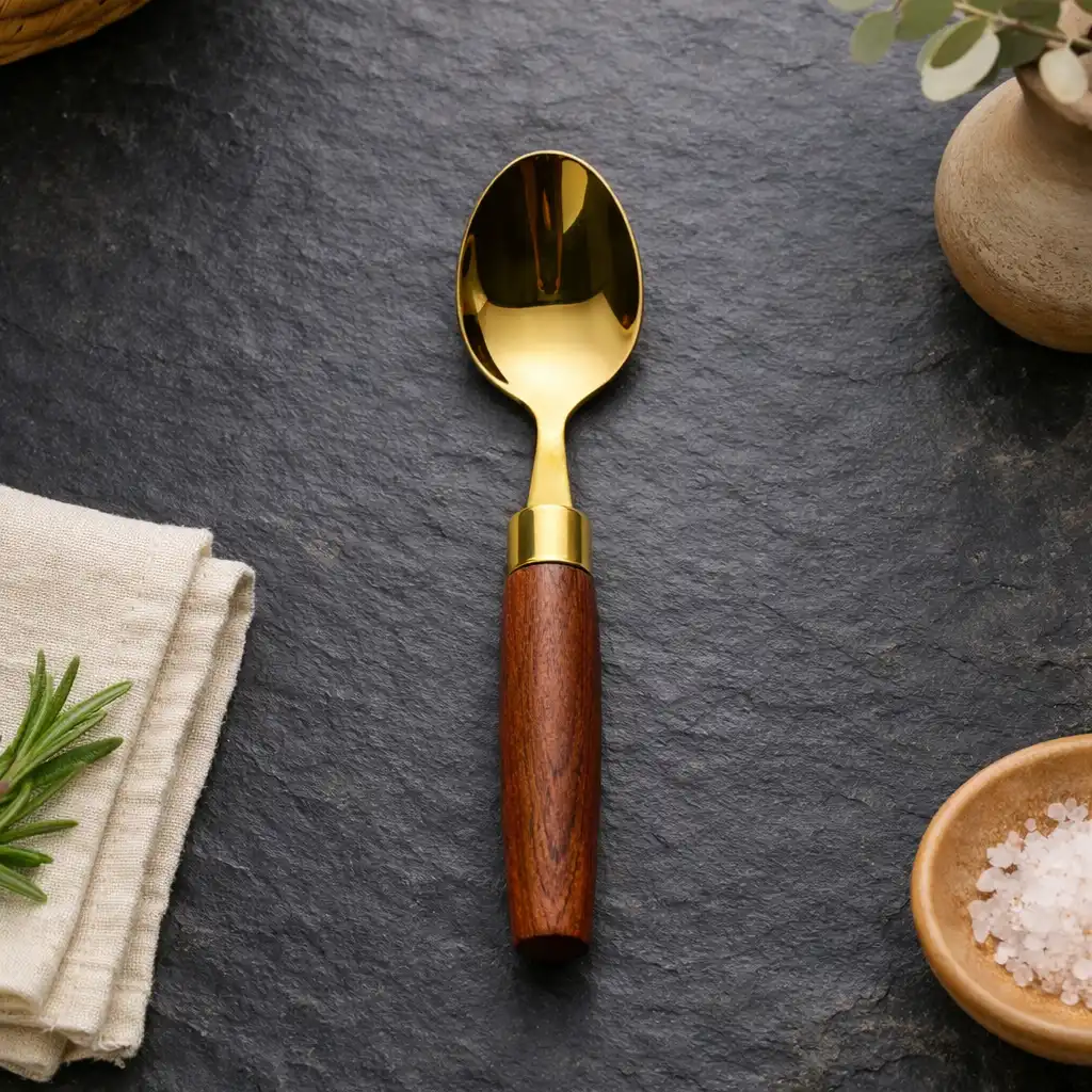 Gold Dinner Spoon With Wood Handle
