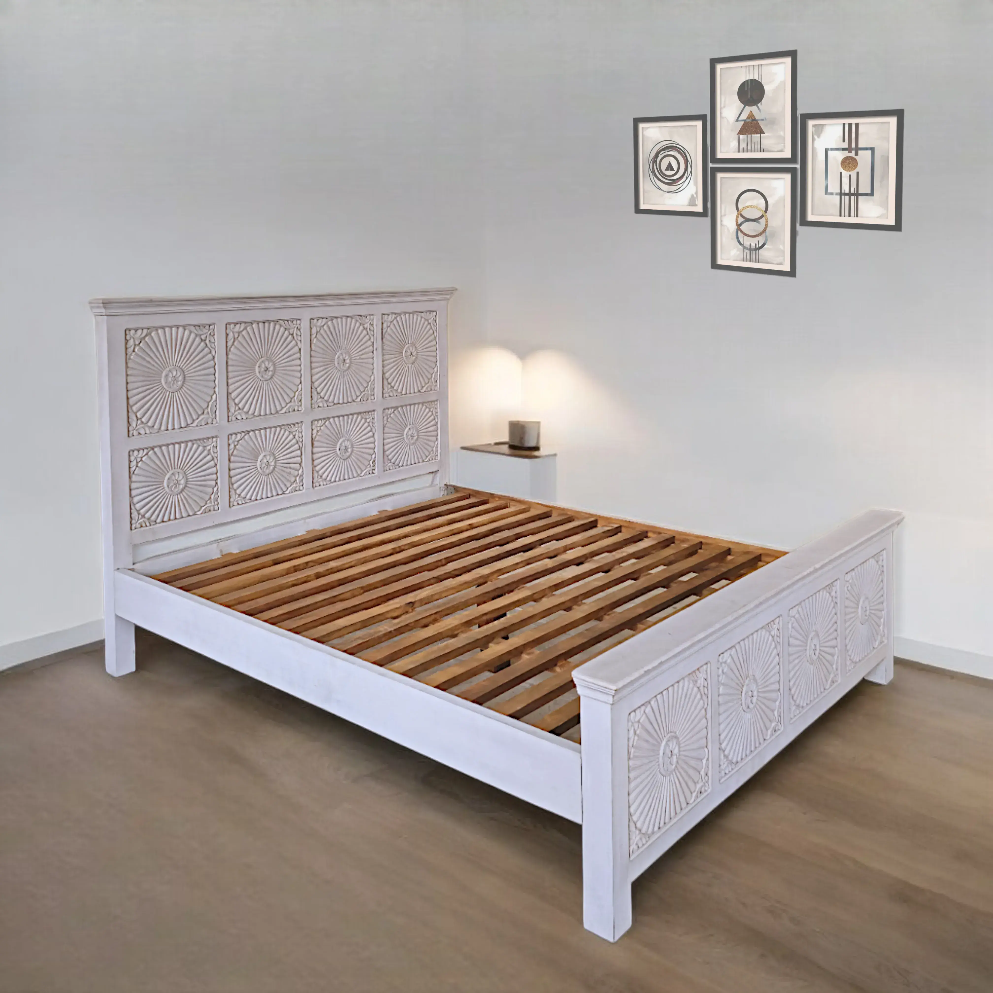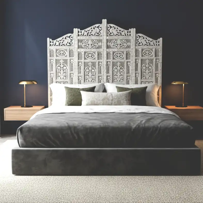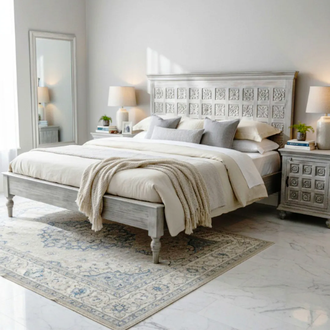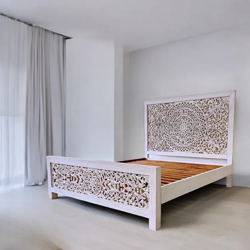 Hand-Carved White Bed