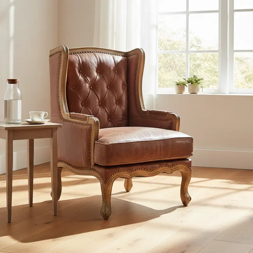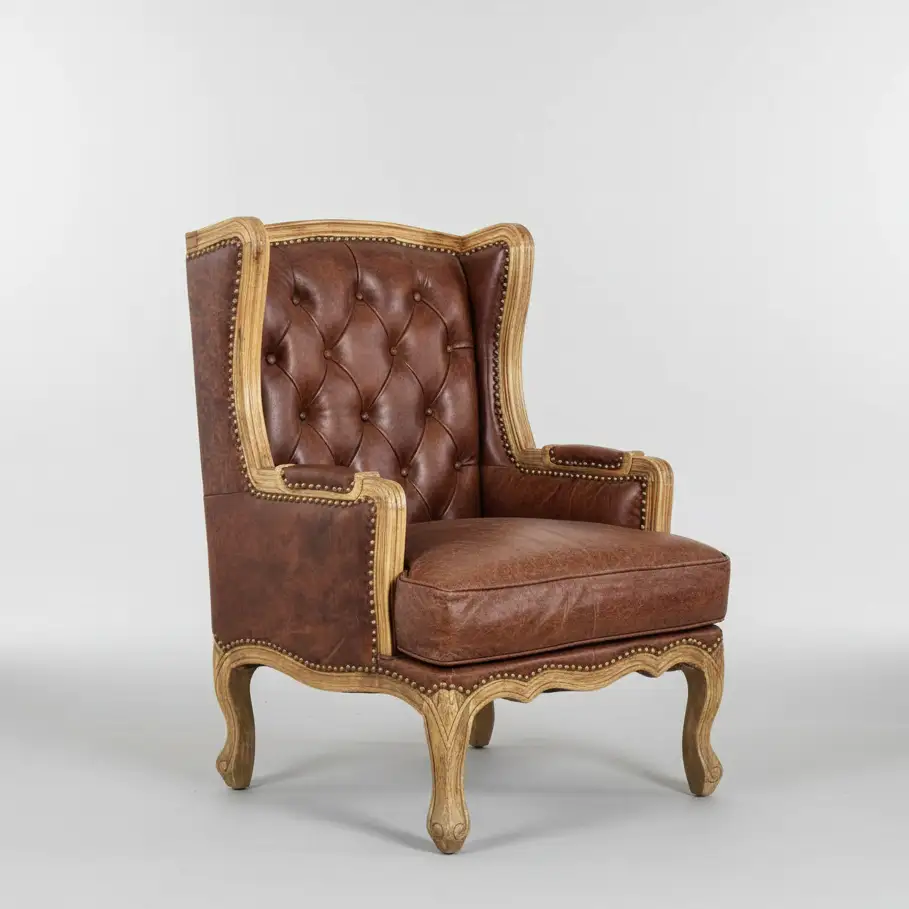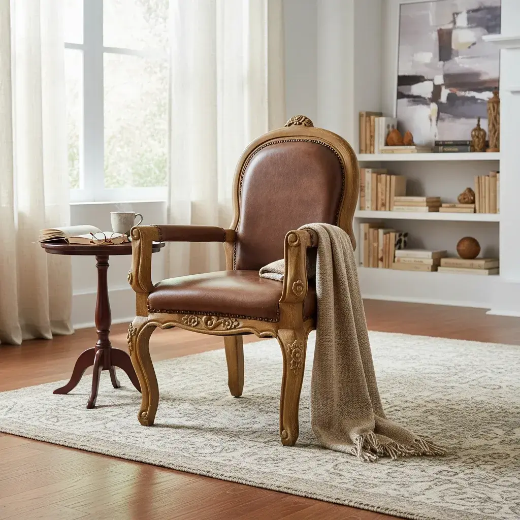 'Chateau' Carved Frame Leather Accent Chair