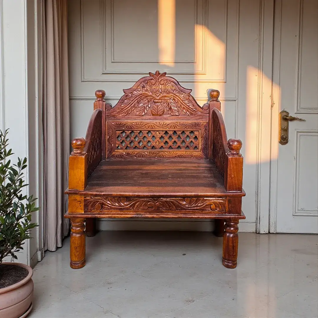 The 'Naqsh Zaynab' Carved Teak Wood Daybed