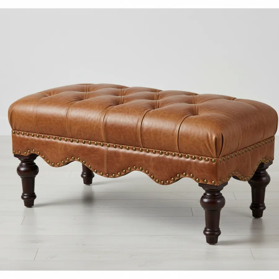 Bench El Khadra The Green/Warm Bench, Natural Leather and Deep Buttons
