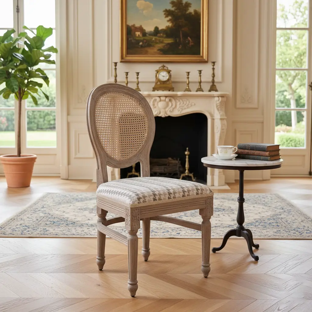 Louis XVI Cane & Linen Accent Chair