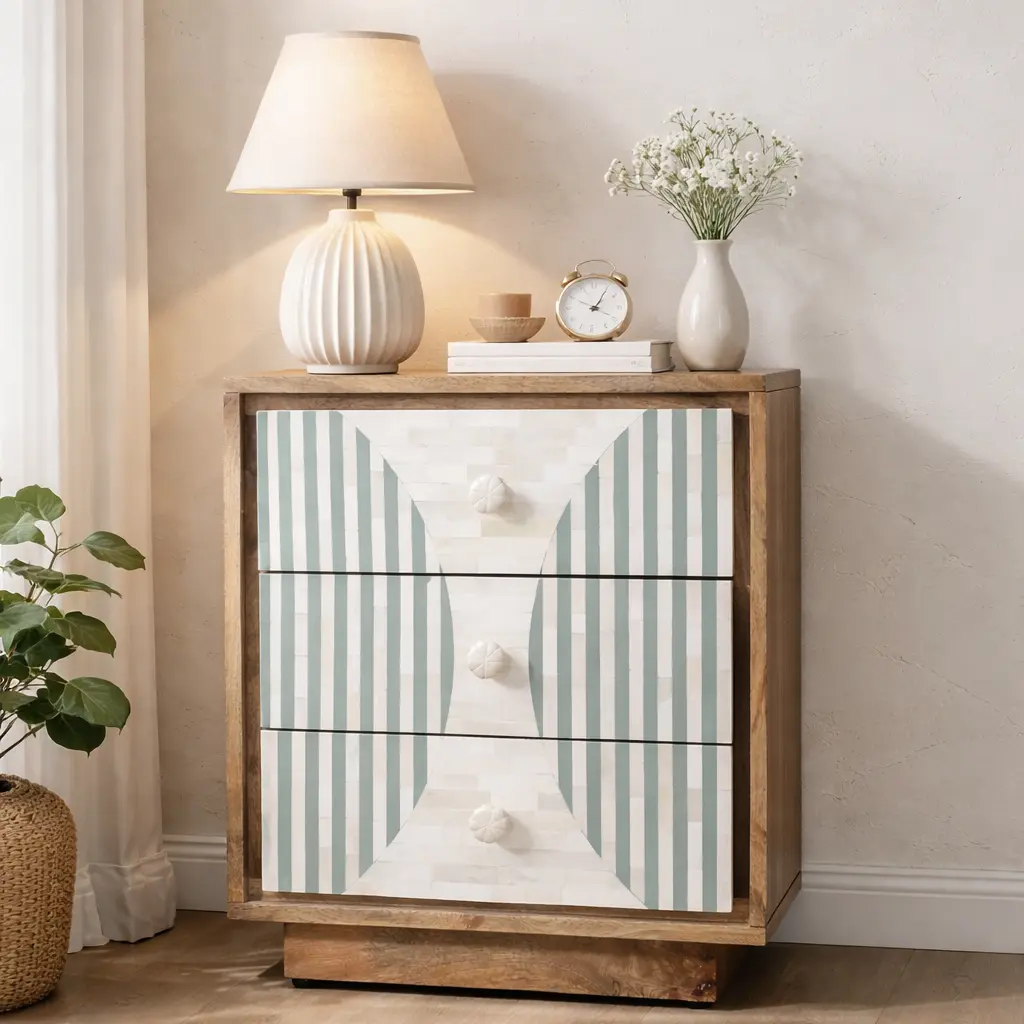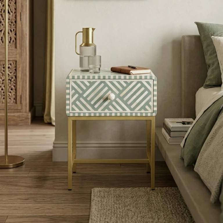 The Indigo-Diamond Bone Inlay Bedside Table