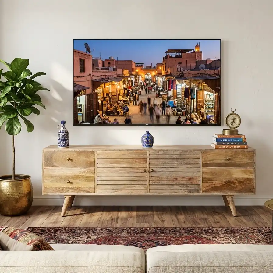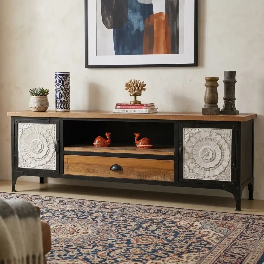 Indigo Aura Artisan Media Stand (Mueble de Madera Maciza)