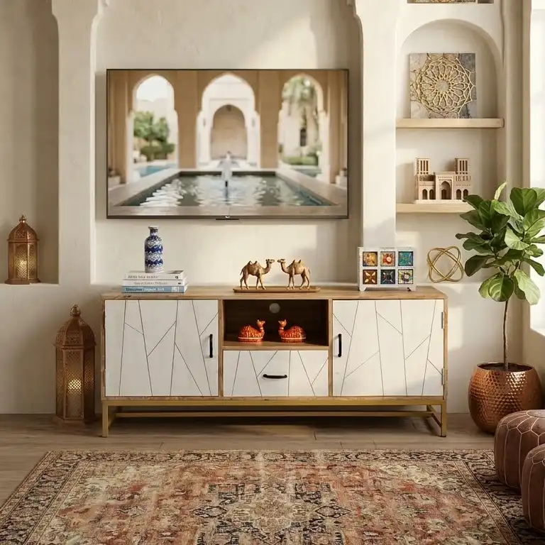 The Majlis Al-Hawa Arched Bone Inlay Media Console