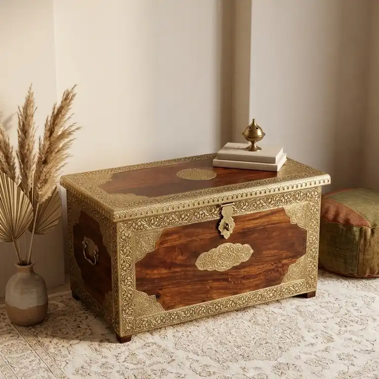 Marwari Rosewood & Brass-Clad Trunk