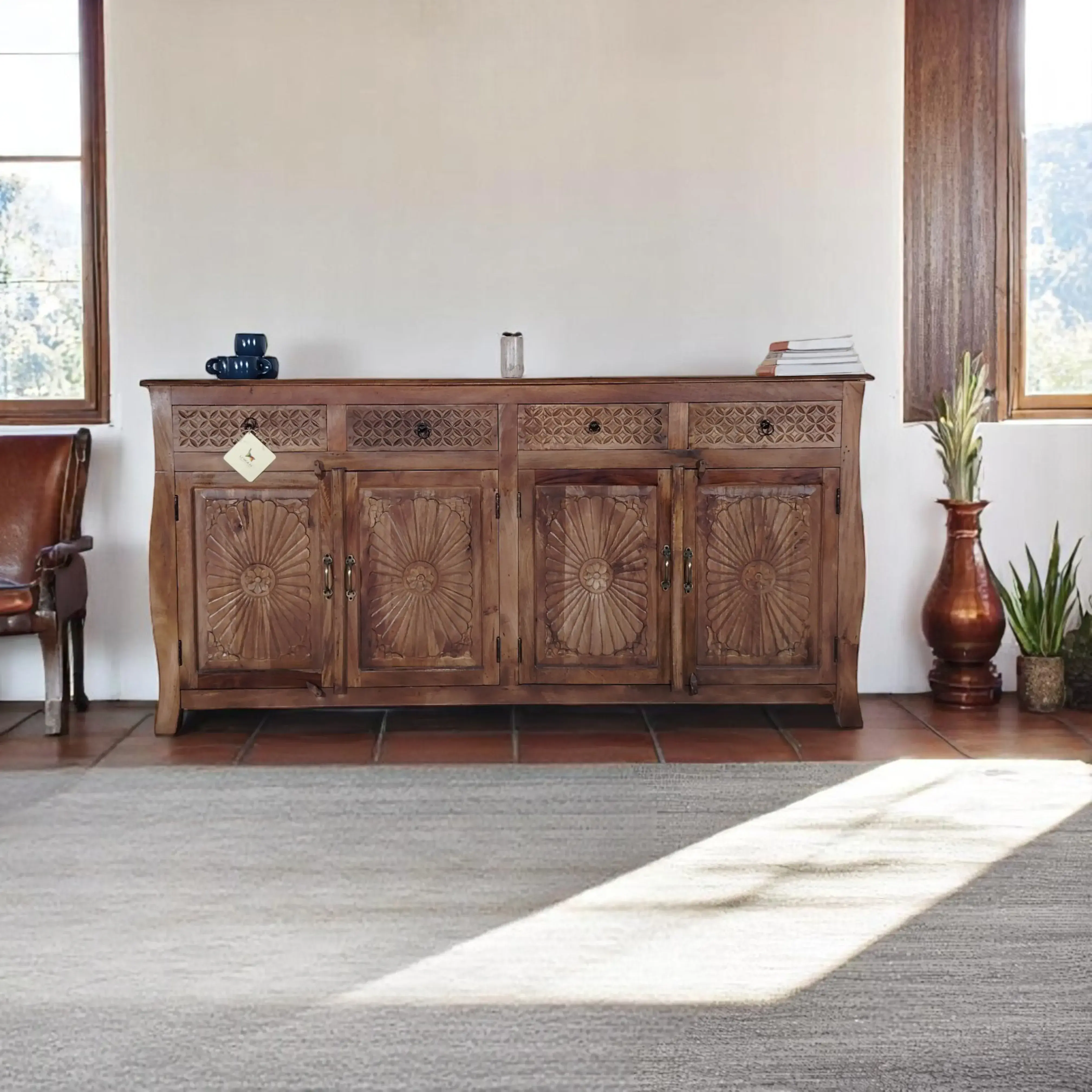Indus Hand-Carved Sideboard / Buffet Cabinet